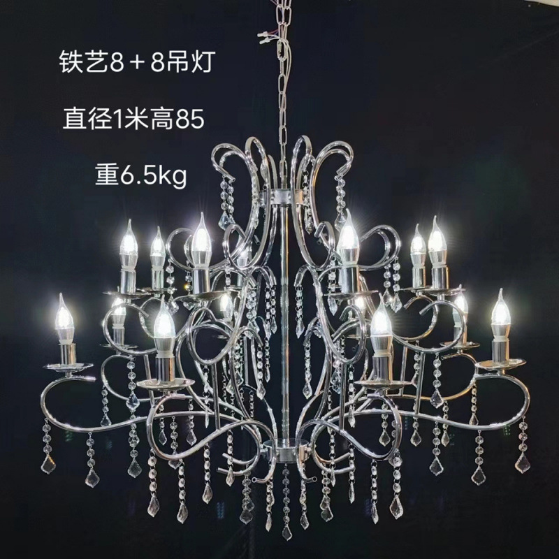 新型結婚式堂鉄芸道具ランプメッキ銀色水晶吊り天井ランプ照明結婚道具水晶チェーンシャンデリア