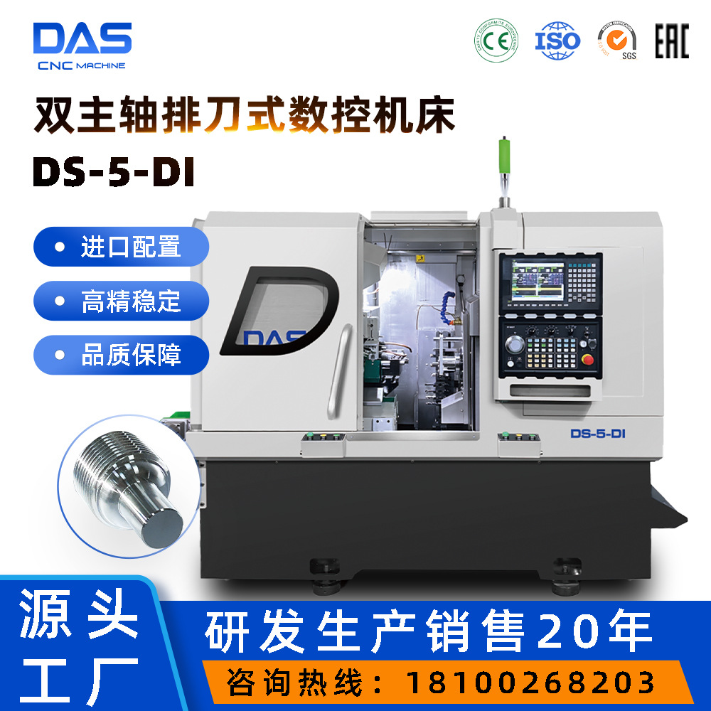 CncメーカーDS-5-DI台湾高精密スピンドル高効率ダブルスピンドルデュアルチャンネルcnc旋盤