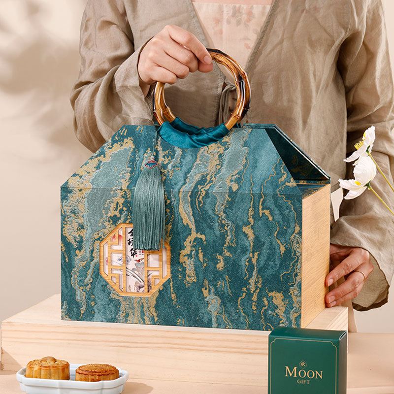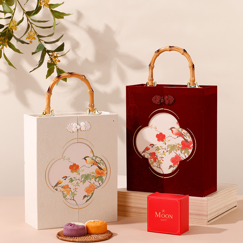 2024年中秋月餅ギフトボックス復古竹節手提げケース12粒月餅包装ボックス中秋節伴手ギフトボックス