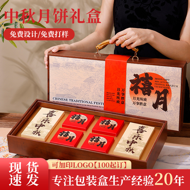 2025 レトロ中秋木製スーツケース 8/10 ムーンケーキ包装箱ベーカリーショップギフトボックス中秋節ギフトボックス
