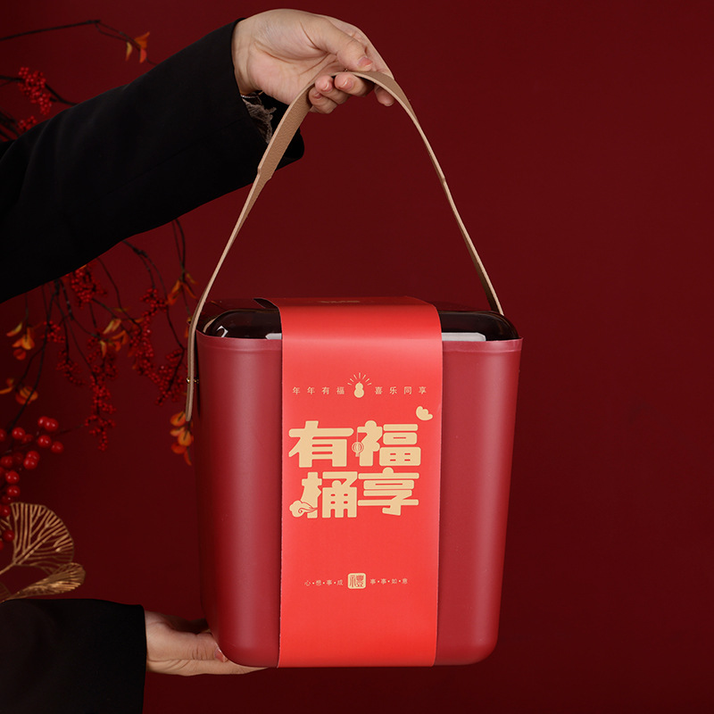 2025年新年抱っこ桶の赤い大サイズの収納箱のお年玉のお菓子の包装箱の蛇年のプレゼントの箱の現物