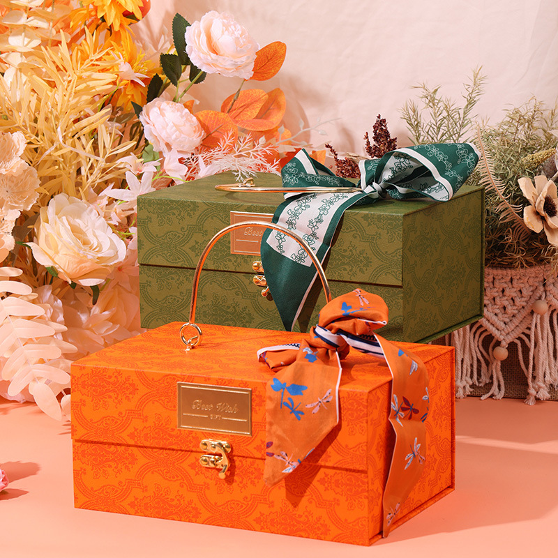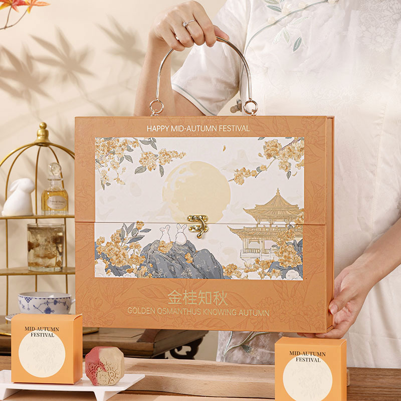 新しい中秋のギフトボックスオレンジ二重大型手提げ箱ホテルビジネスハイエンド月餅ワイン包装箱スポット
