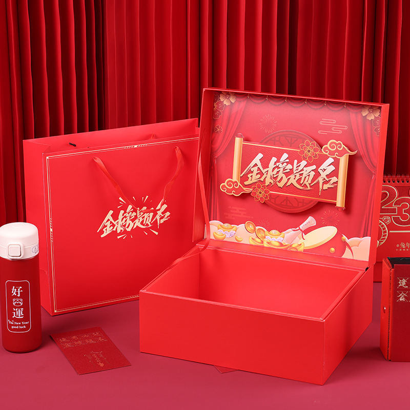 高級龍年新春礼箱会社年次総会ビジネス連手礼箱旧正月大ギフトバッグ年物対聯包装箱