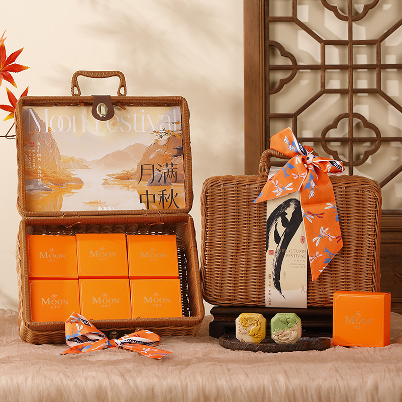2025 クリエイティブ中秋月餅ボックスレトロ籐ハンドバッグボックスホテルグループ購入月餅包装ボックス中秋節ギフトボックス