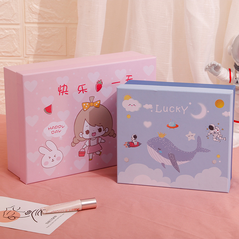 新しいピンクの天地蓋ギフトボックス赤ちゃん満月ギフトボックス入学シーズン児童漫画文房具ボックススポット