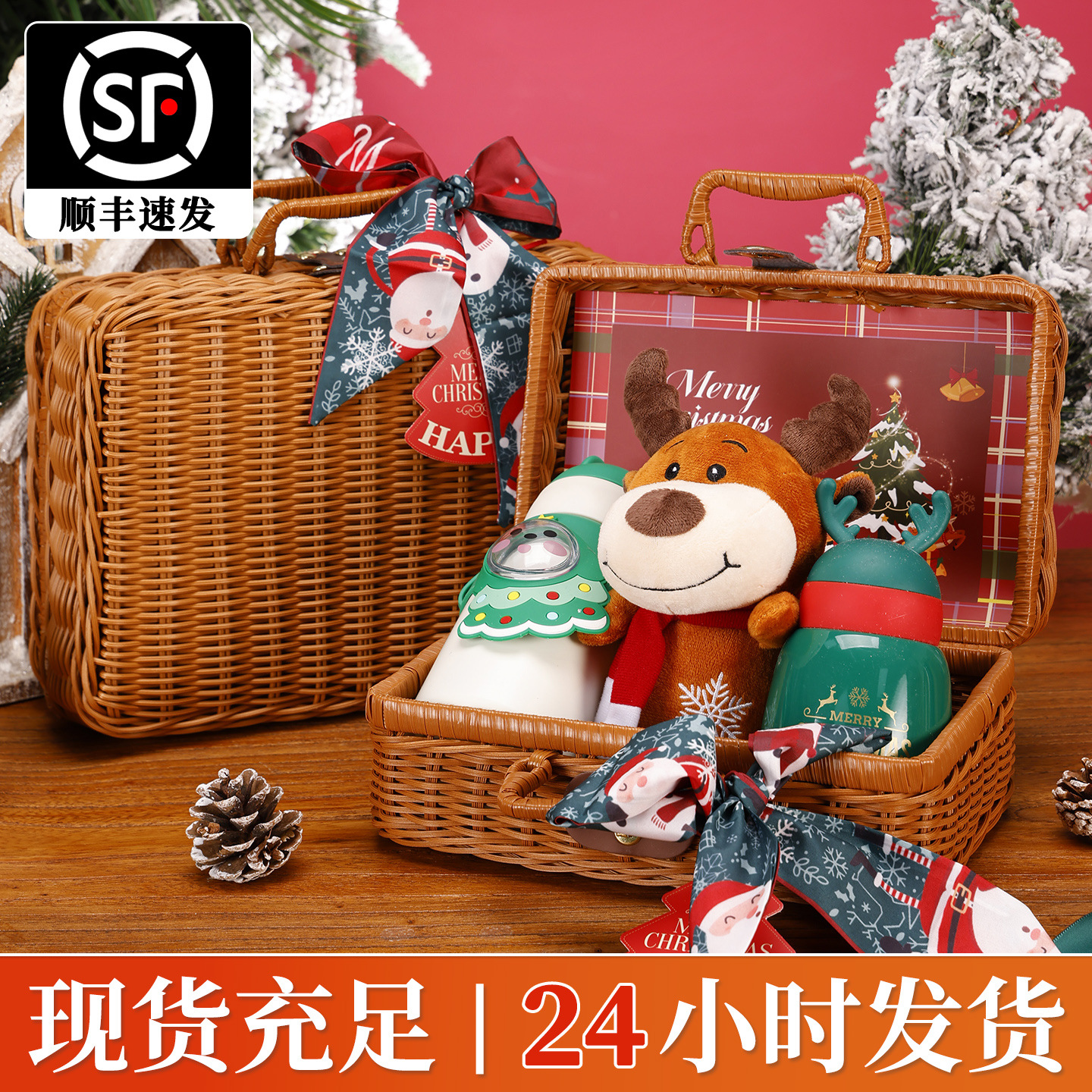 2024クリスマス藤編み手提げ大祝日お土産セット保温カップおやつプレゼントクリスマスプレゼント包装箱