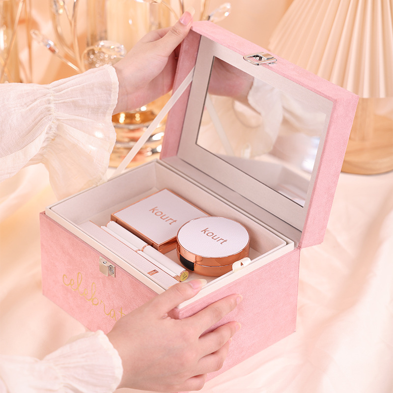 美しいジュエリー収納ケース二重ベルベット携帯化粧ケースブレスレットジュエリーネックレスアクセサリーケース卸売りジュエリーケース