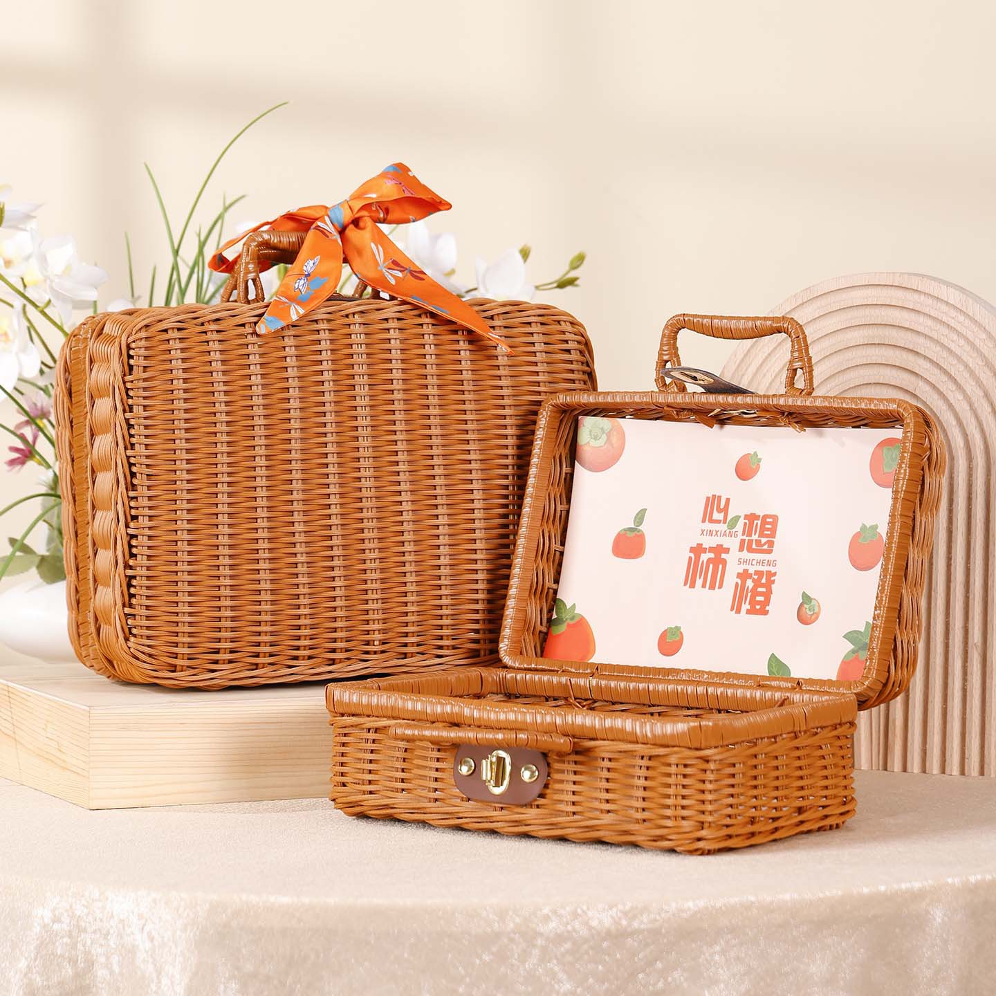 2023新型籐編み収納箱キャンプピクニック手提げ箱祝日プレゼント箱結婚お返しプレゼントセット