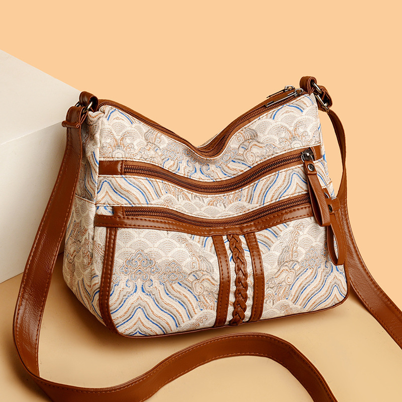 2024秋の新型斜めショルダーバッグのレトロなファッションは大容量のシンプルな女性のショルダーバッグをつなぎ合わせます。