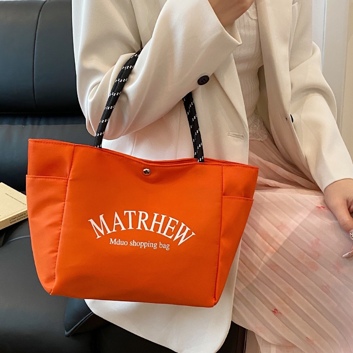 新型日系ネット赤ドーパミンシンプルアルファベット大容量手提げ袋ママバッグ通勤ショッピングトート
