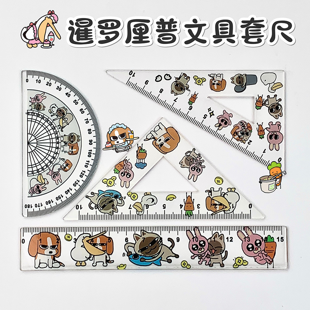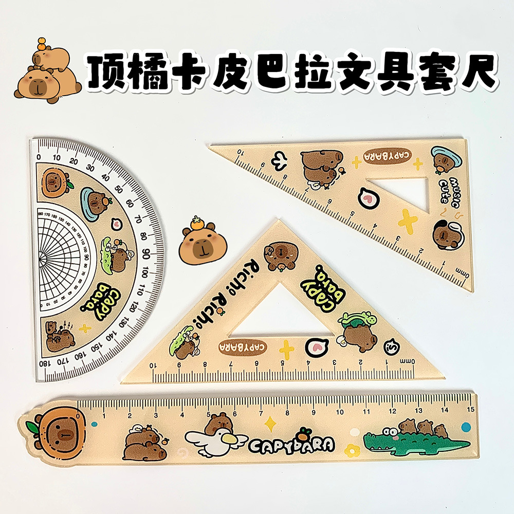 カートゥンカピバラアクリル物差し4点セット目盛り製図測定定規カード直尺三角学生文房具
