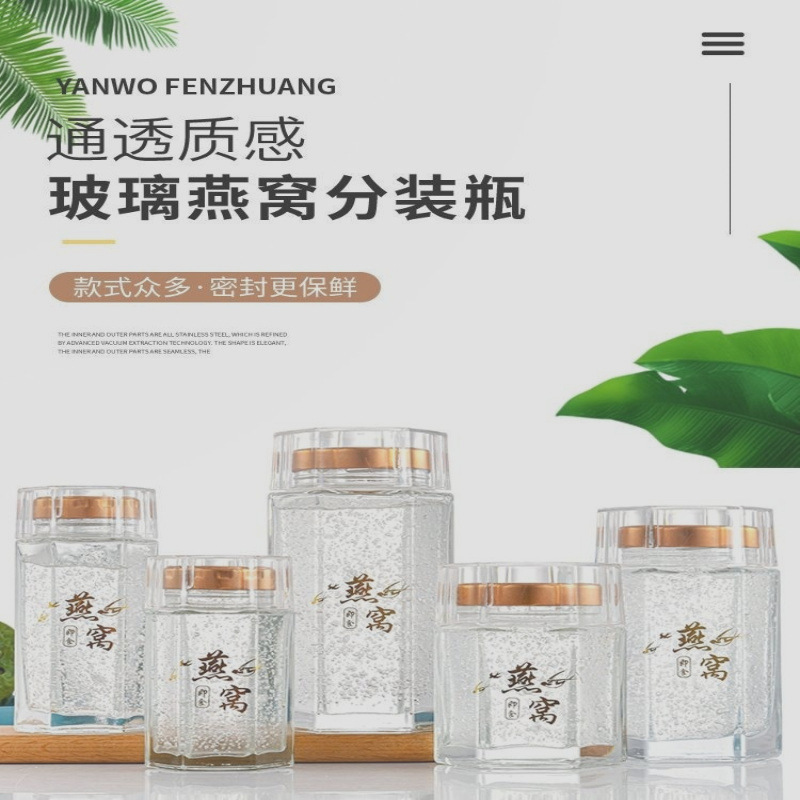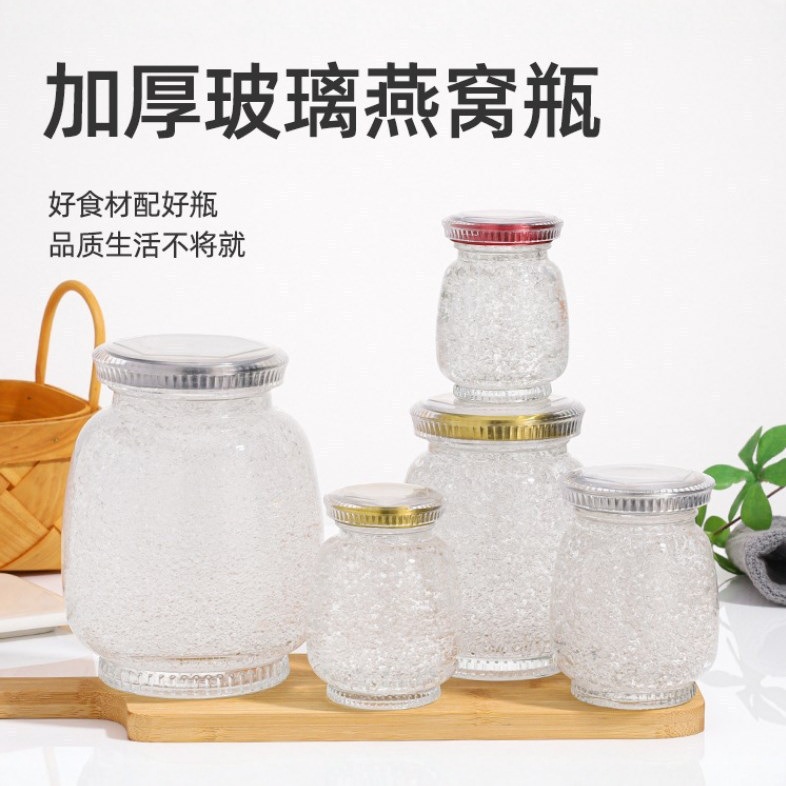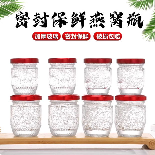 すぐに食べられるツバメの巣ガラスボトル、再包装された小さなボトル、蓋付きカスタード魚浮き袋密封瓶、高温耐性、印刷可能なロゴで鮮度保持