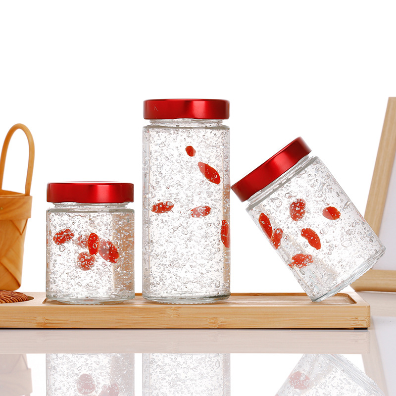スポット透明ツバメの巣ボトル、高温耐性ガラスボトル、大口ヒラメボトル、密封ハニージャムボトル