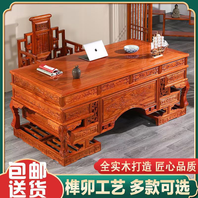 無垢材デスク、中国風デスク、金花梨材エグゼクティブデスク、ライティングデスク、書画デスク、書道デスク、中医学館診察台