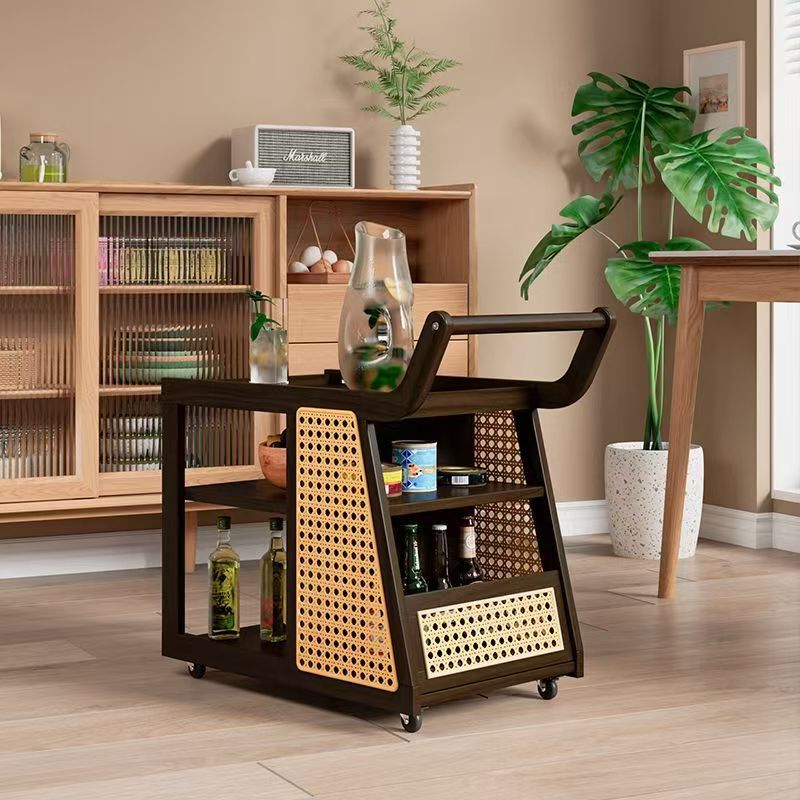 新しいレトロな籐のキャビネットサイドボード一体型フレンチリビングルームとダイニングルームの壁に取り付けられた多機能収納キャビネット
