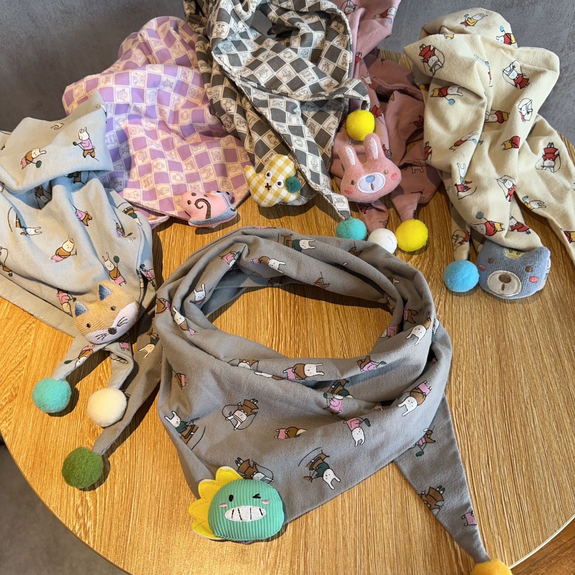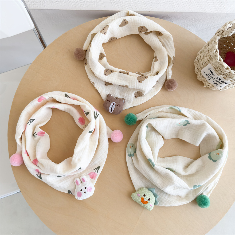 2025 秋と冬の綿とリネンの子供スカーフ男の子と女の子漫画三角スカーフベビー唾液タオル暖かいベビースカーフ