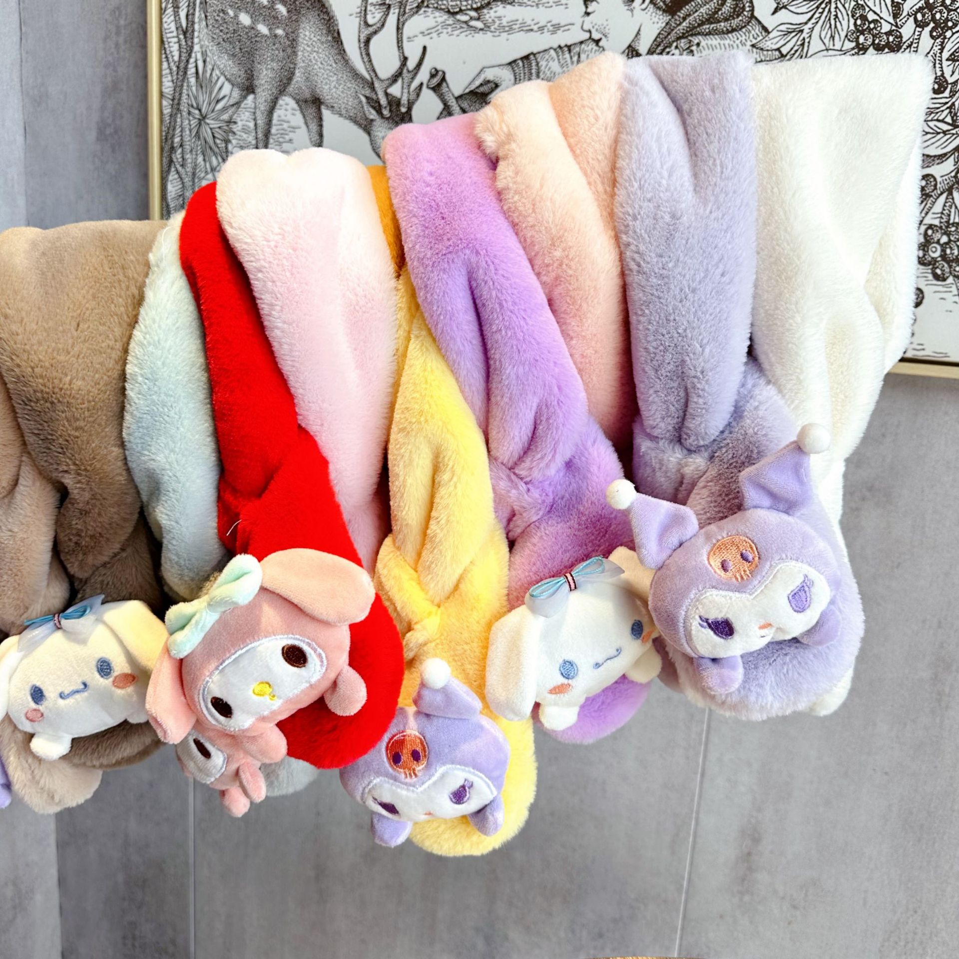 2025年新作子供用スカーフ 秋冬用ふわふわ親子お揃いあったか可愛い厚手漫画風イミテーションラビットファー ベビー用ネックウォーマー