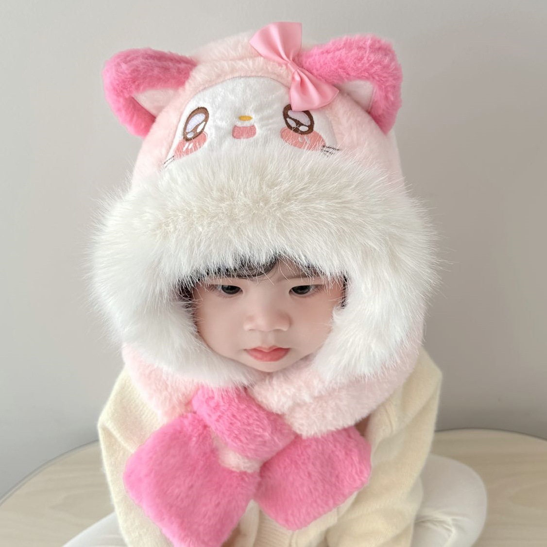 冬の子供用マフラー一体帽子保温帽子アニメの赤ちゃん帽子韓国版男女子供用耳当て帽子可愛い子供帽子
