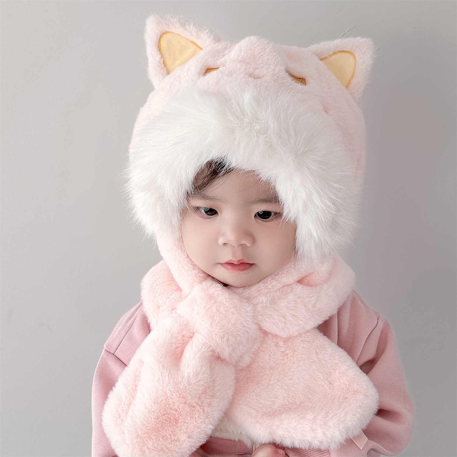 子供の帽子のマフラーが一体になって冬に保温して、男の子の女の子の赤ちゃんの2セットの赤ちゃんの肌のベルベットの帽子を厚くします