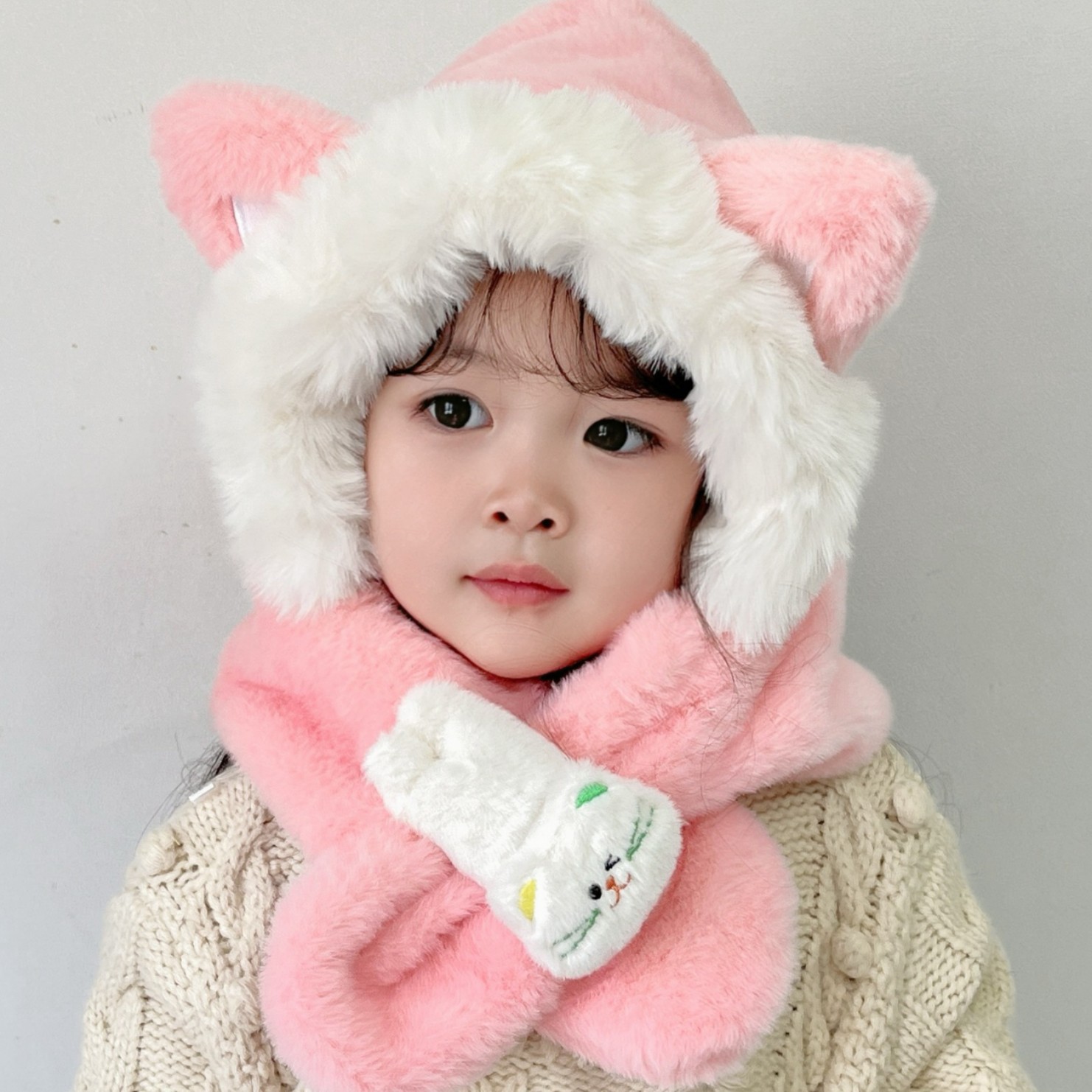 子供の帽子のマフラーの一体の秋冬の2つのセットは保温してかわいいです。