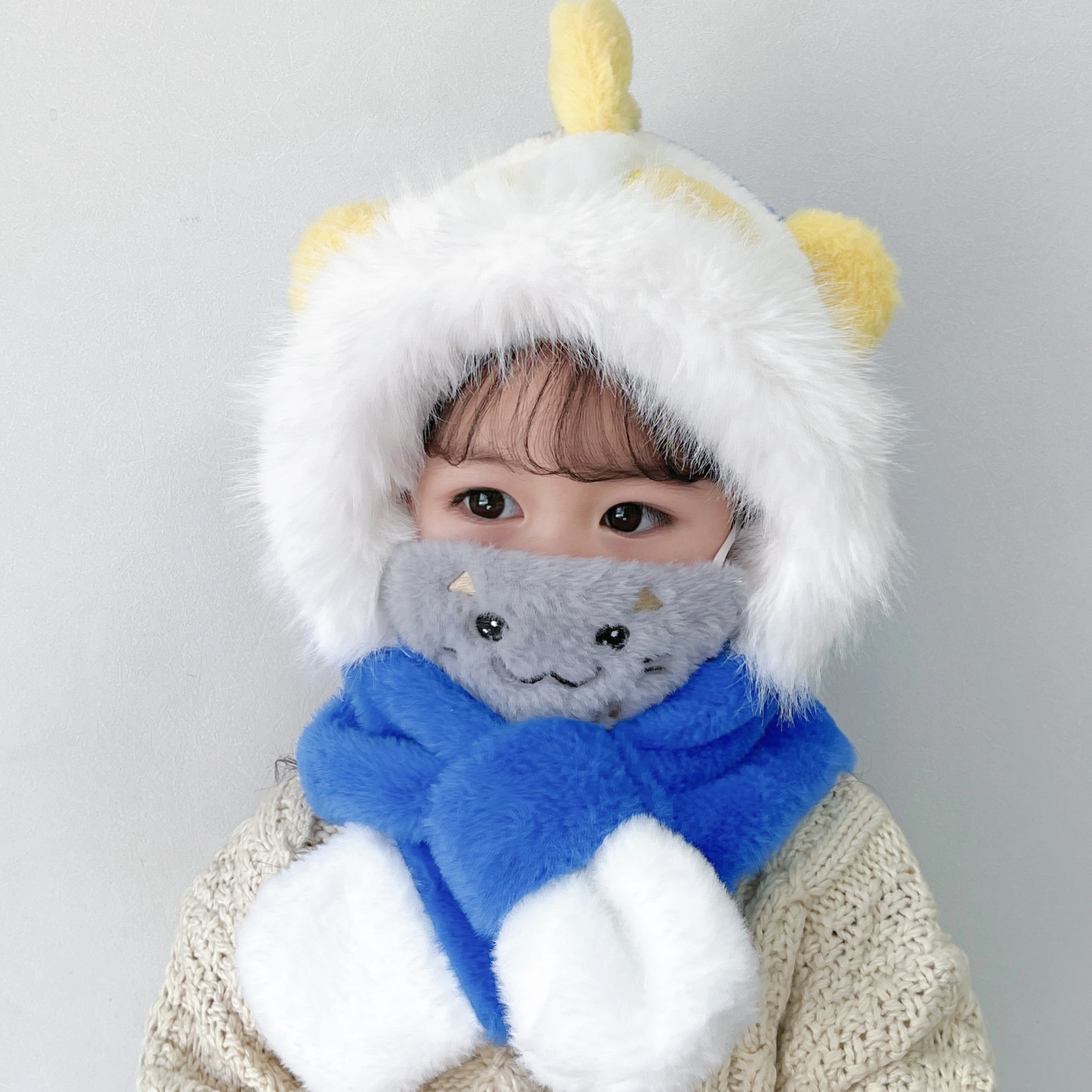 子供の帽子のマフラーが一体になった冬の男女の子供の毛の帽子の防風防寒耳保護マスクは三つのセットを取り外します。