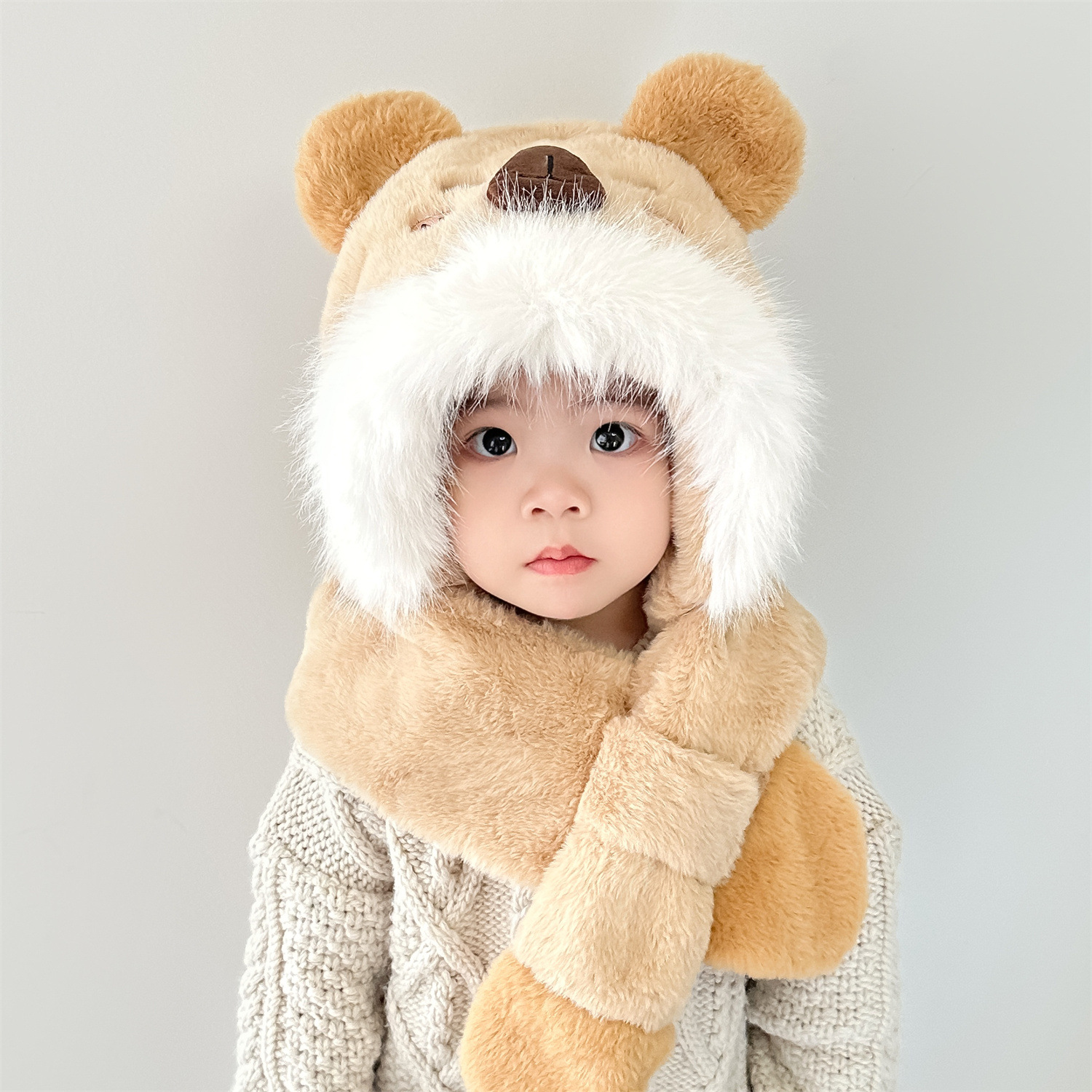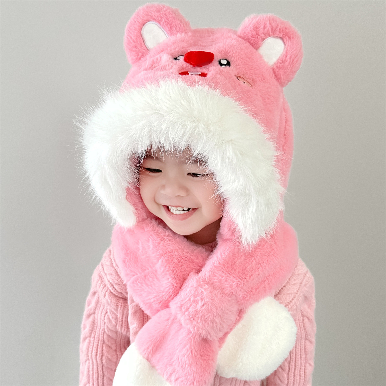 冬の子供用マフラー一体帽子保温帽子アニメの赤ちゃん帽子韓国版男女子供用耳当て帽子可愛い子供帽子