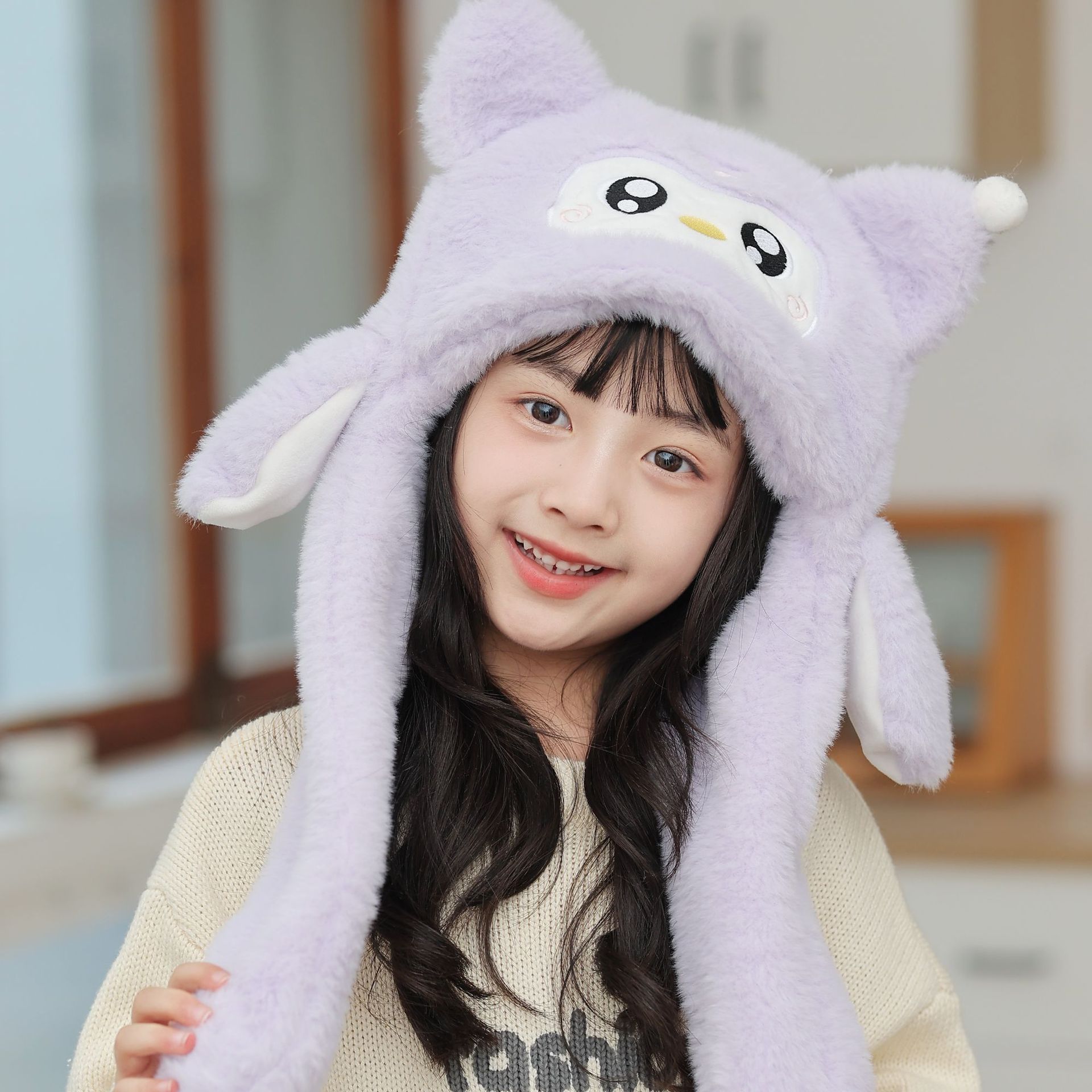 かわいいぬいぐるみの耳は帽子のマフラーを動かすことができます。