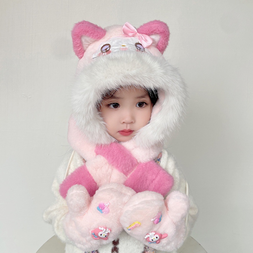 子供用帽子冬保温男の子漫画かわいい保温韓国版女の子男の子帽子付きマフラー手袋一体