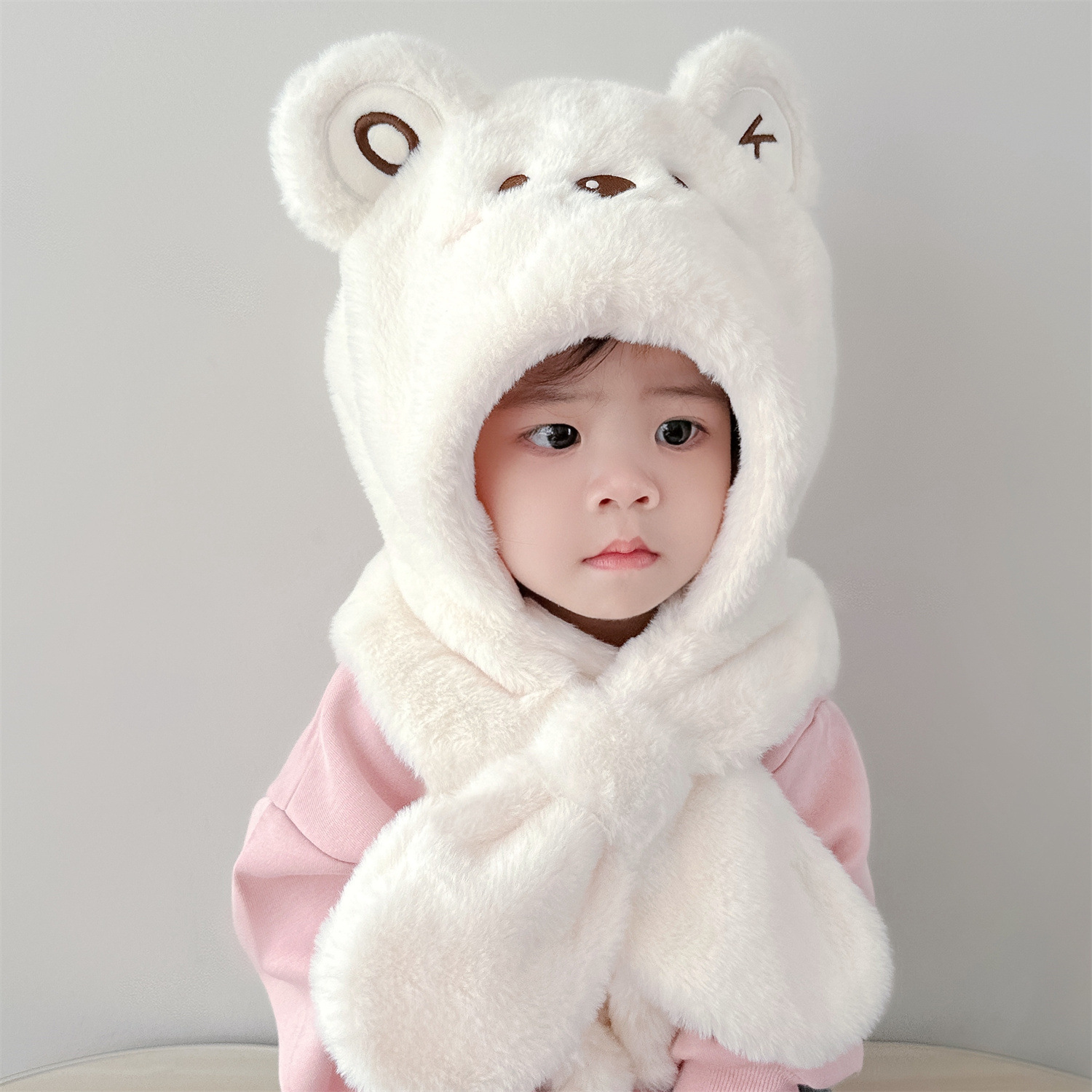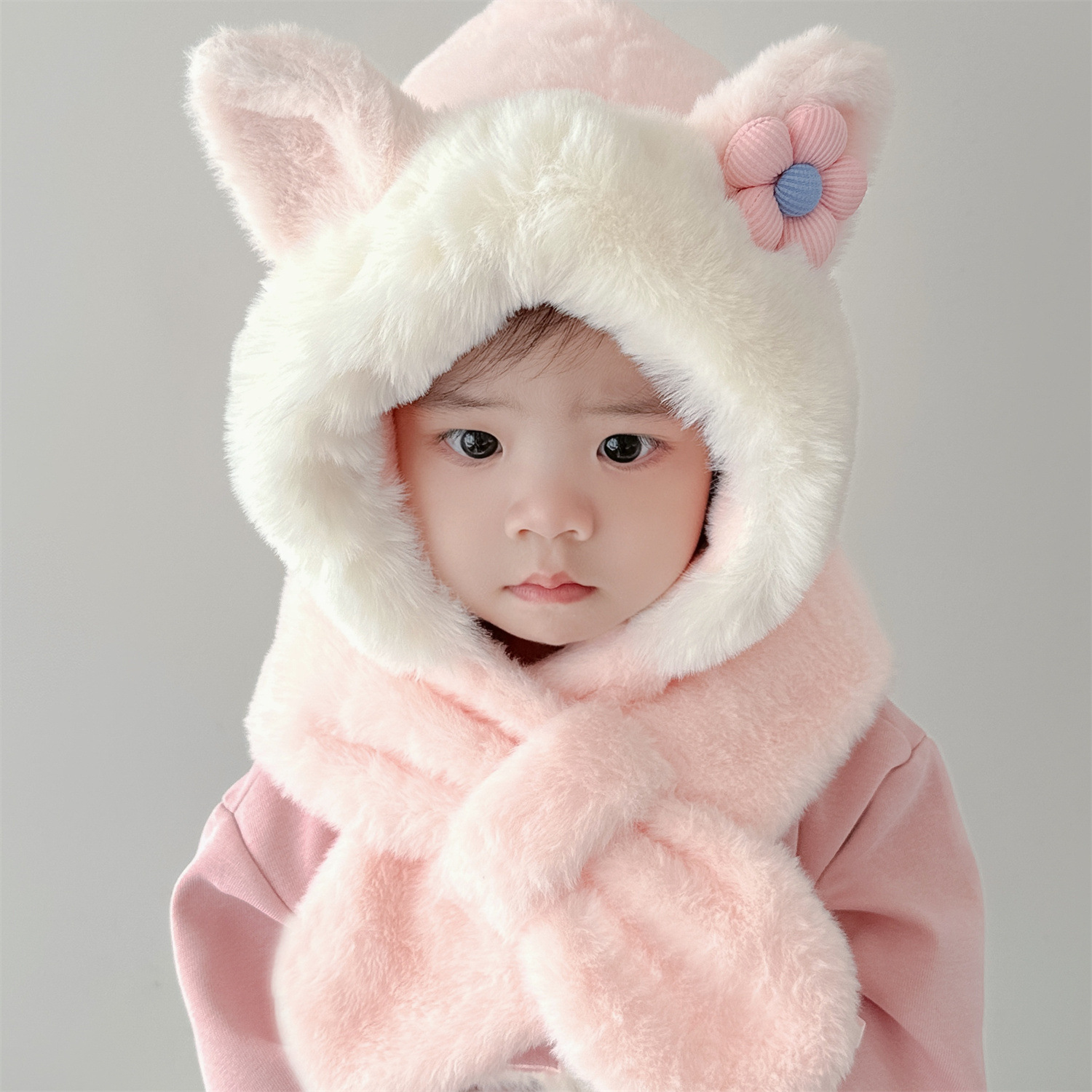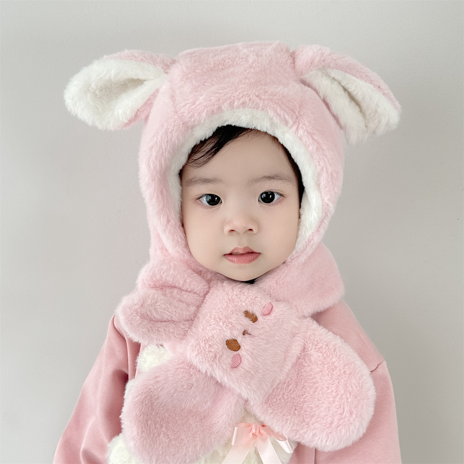 子供の帽子冬の男女の子供の韓国版の帽子は首を囲む一体の帽子の2つのセットのぬいぐるみの赤ちゃんの防風保護の耳の厚いです。