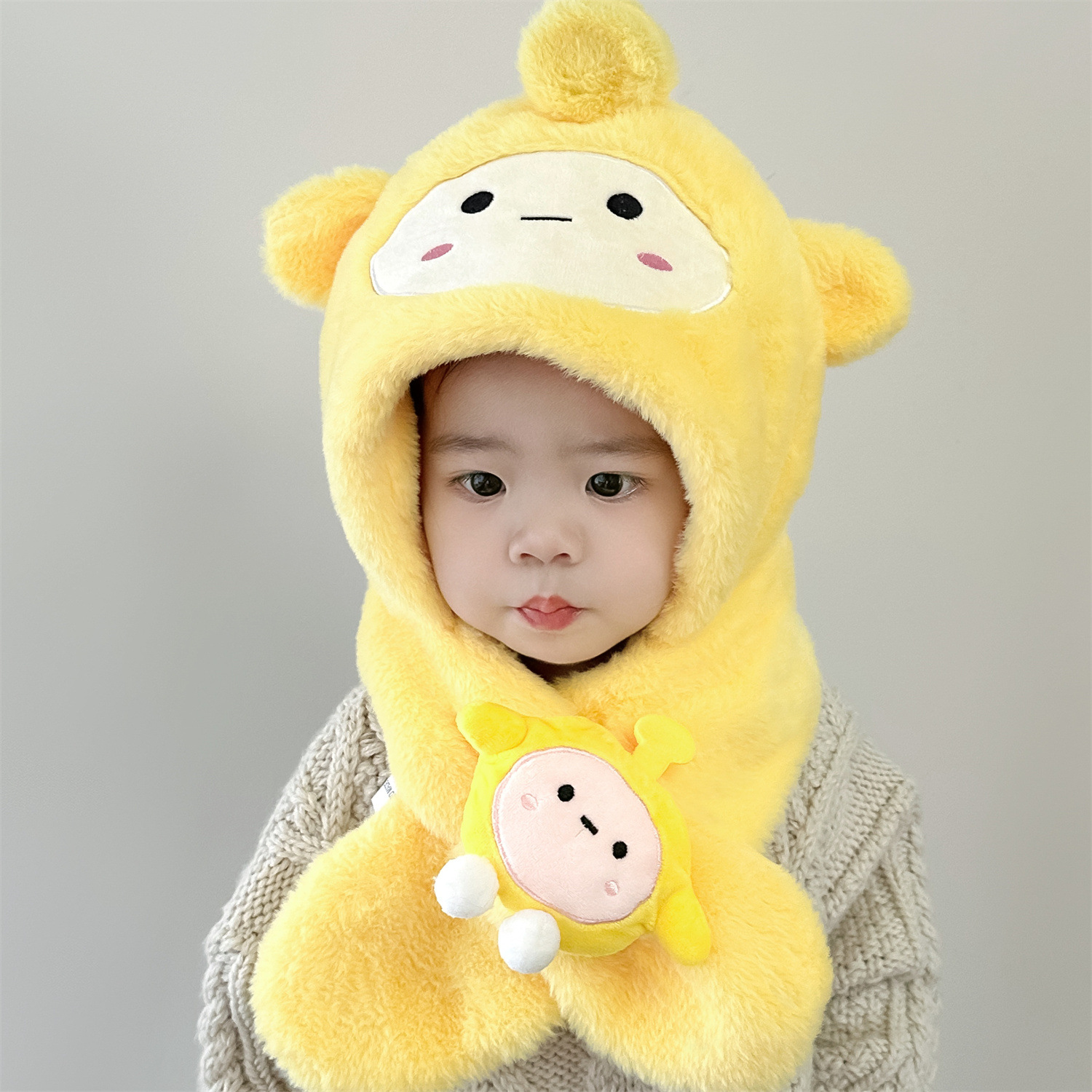 子供の帽子秋冬の赤ちゃんのマフラーの一体帽子