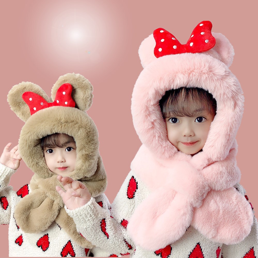 ベビー帽子、スカーフ、手袋一体型秋冬親子用ウサギ毛耳当て帽子、男女兼用子供用ネックウォーマー、幼児用漫画柄
