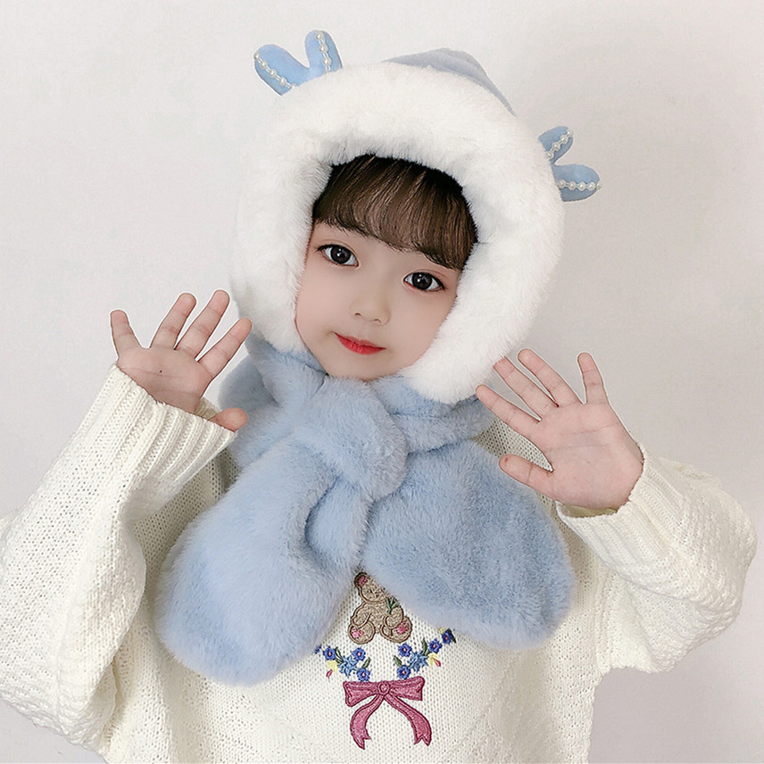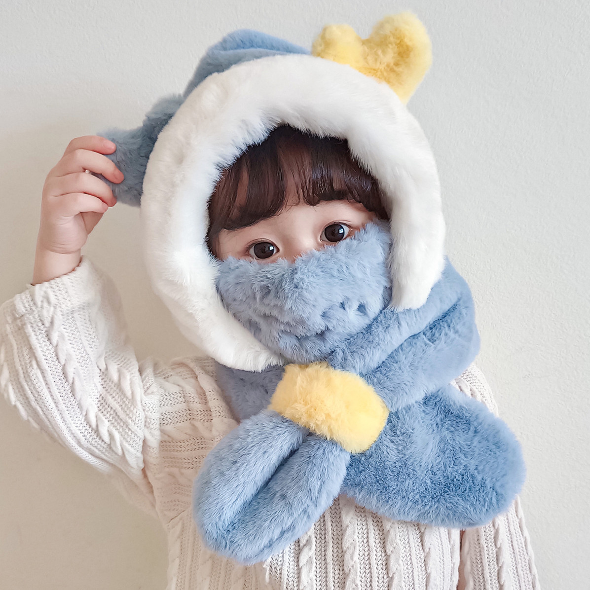 子供の冬の連体帽子のマフラーの帽子とベルベットの厚いアニメの耳保護の一体防寒東北の帽子の男女の子供の帽子