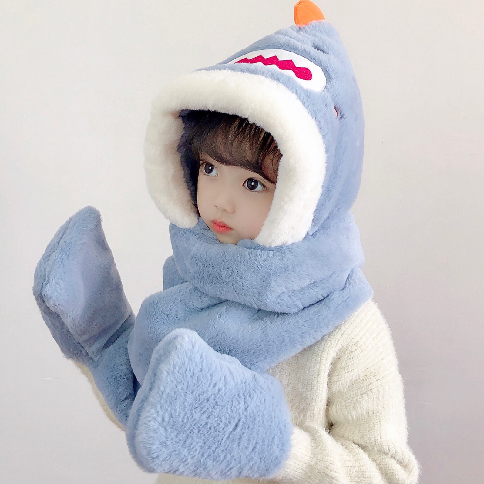 手袋一体子供冬の新型帽子マフラー三点セットアニメ三合一セット男の子生放送代発