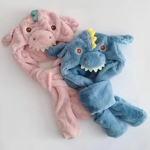 子供の帽子のマフラーの一体の男の子の冬の恐竜の耳は動くことができます。