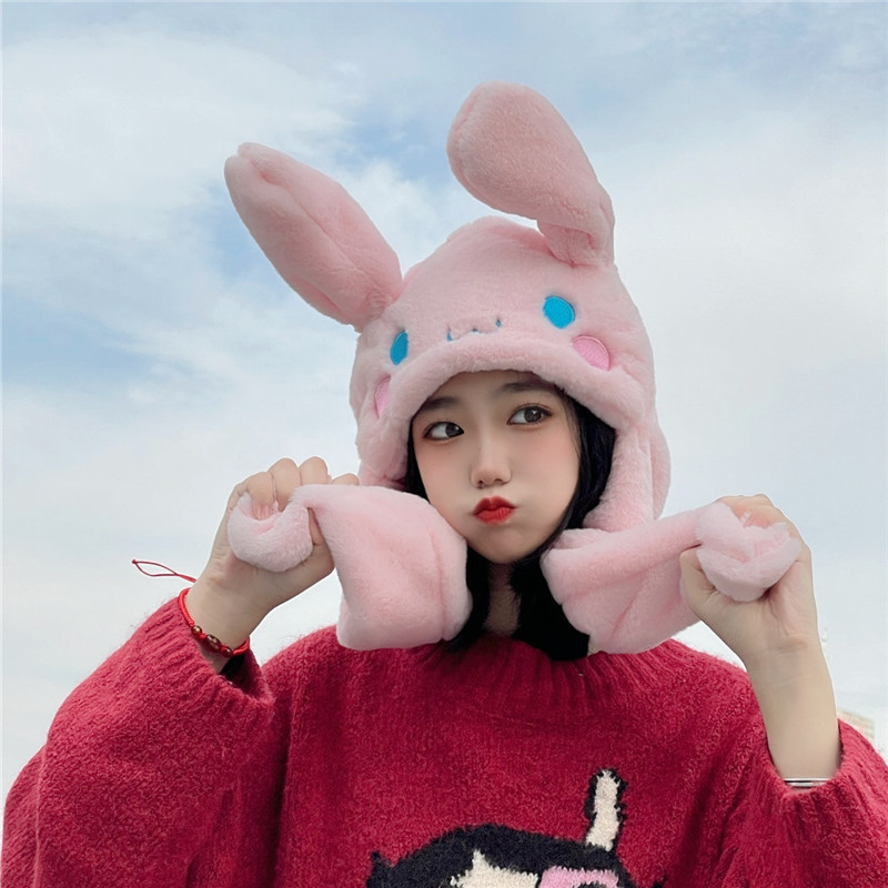 2023新型の毛のウサギの帽子のマフラーの手袋の子供の一体の帽子の女性の冬は厚い保温の耳のマフラーを保護します。