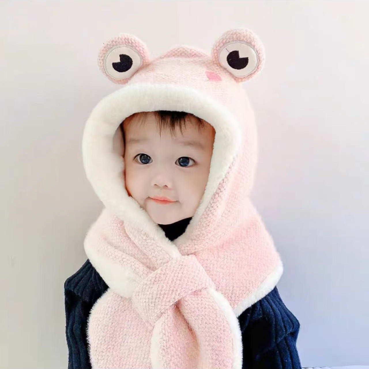 赤ちゃんの秋冬の子供の帽子のマフラーの一体のベルベットは女の子のかわいい男の子の頭の子供の一体の帽子を厚くします