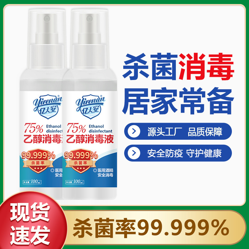億人安75% アルコール噴霧ポータブル100ml無洗速乾75度エタノール消毒液卸売り