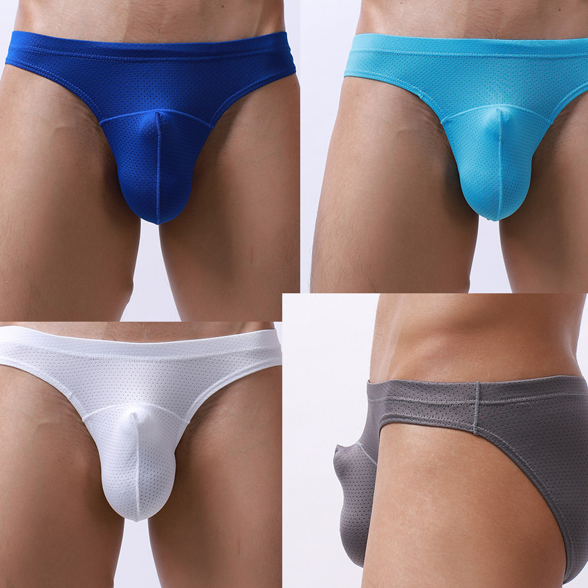 外国貿易男覇盾下着透明氷糸平角ズボンセクシー低腰透視下着激凸袋純色パンツ