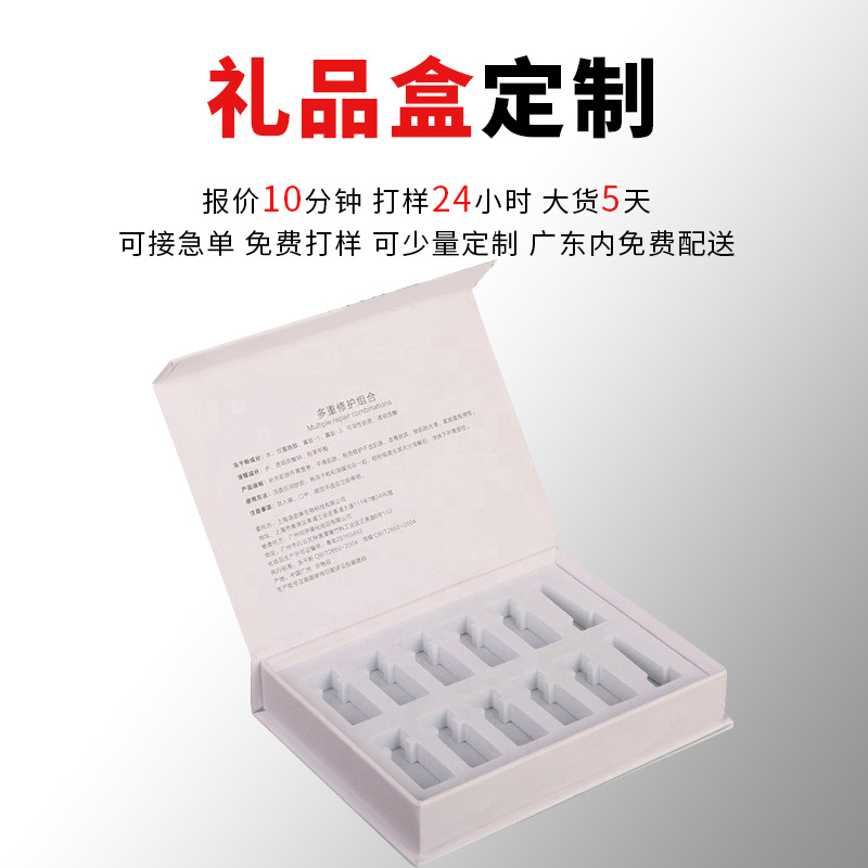深センメーカー白段ボールエッセンシャルオイルクリームカラーボックスフリップトップスキンケア製品セットギフトボックス化粧品包装ボックス
