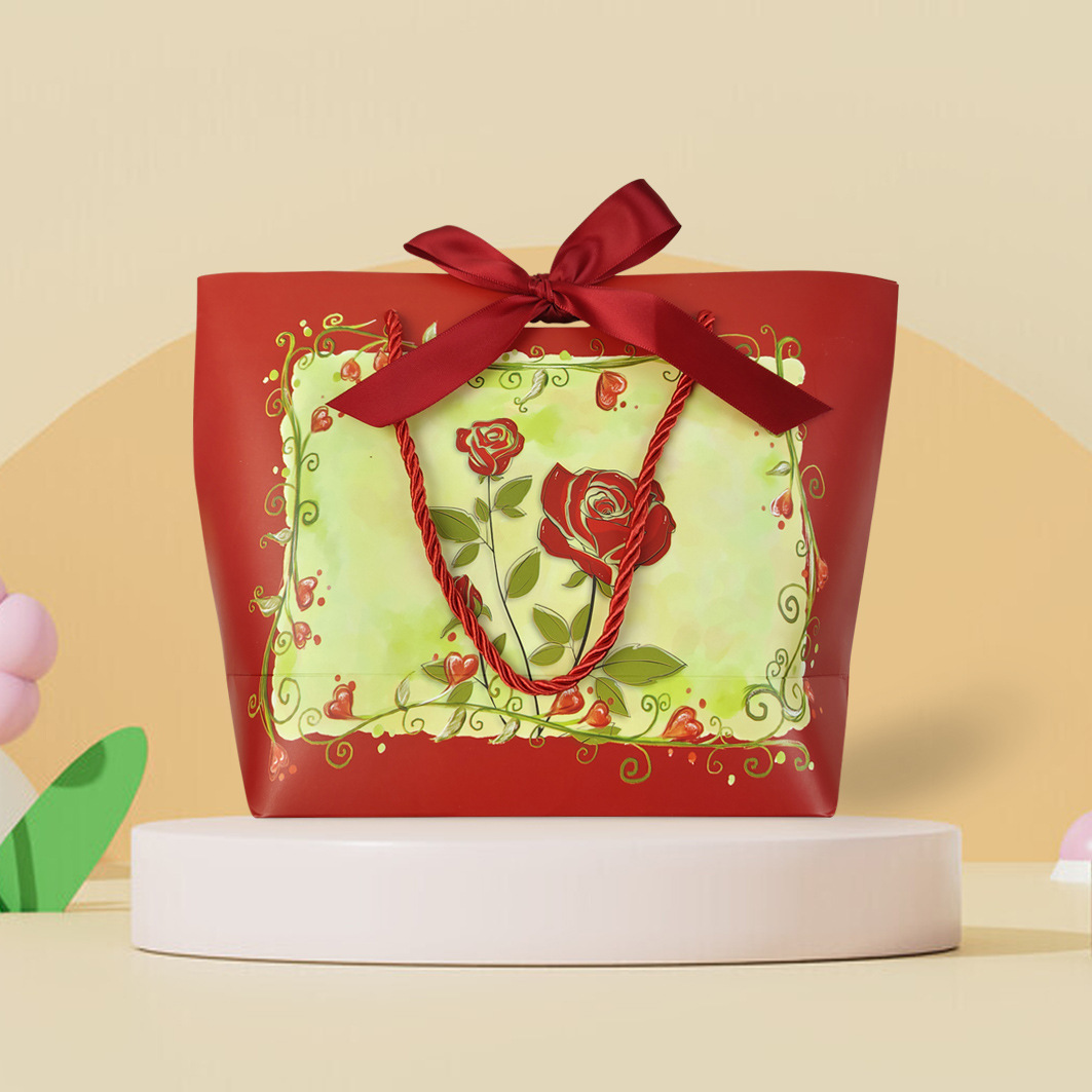 現物新品バラ手提げ袋お祝い祝日プレゼント包装袋化粧品レジ袋アクセサリー袋