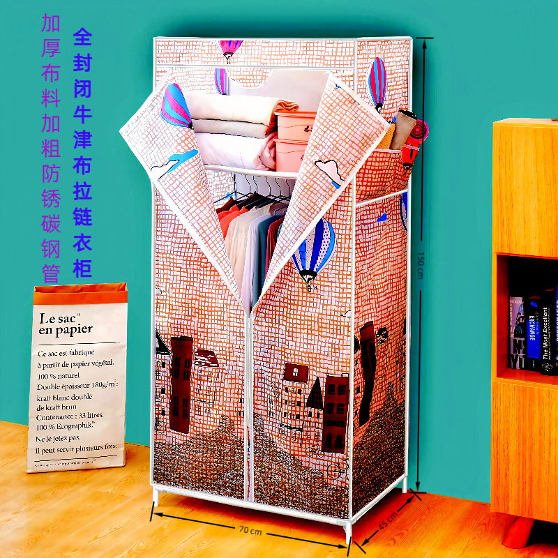 厚手の布製ワードローブ、シンプルなワードローブ、布製金属素材、学生収納吊り下げワードローブ、家庭用完全密閉布製ワードローブ