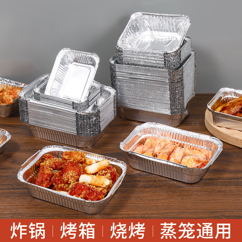 長方形のアルミ箔の紙と錫の紙の皿を焼いて厚い碗を焼いて使い捨てのアルミ箔を焼いて箱を包装します。