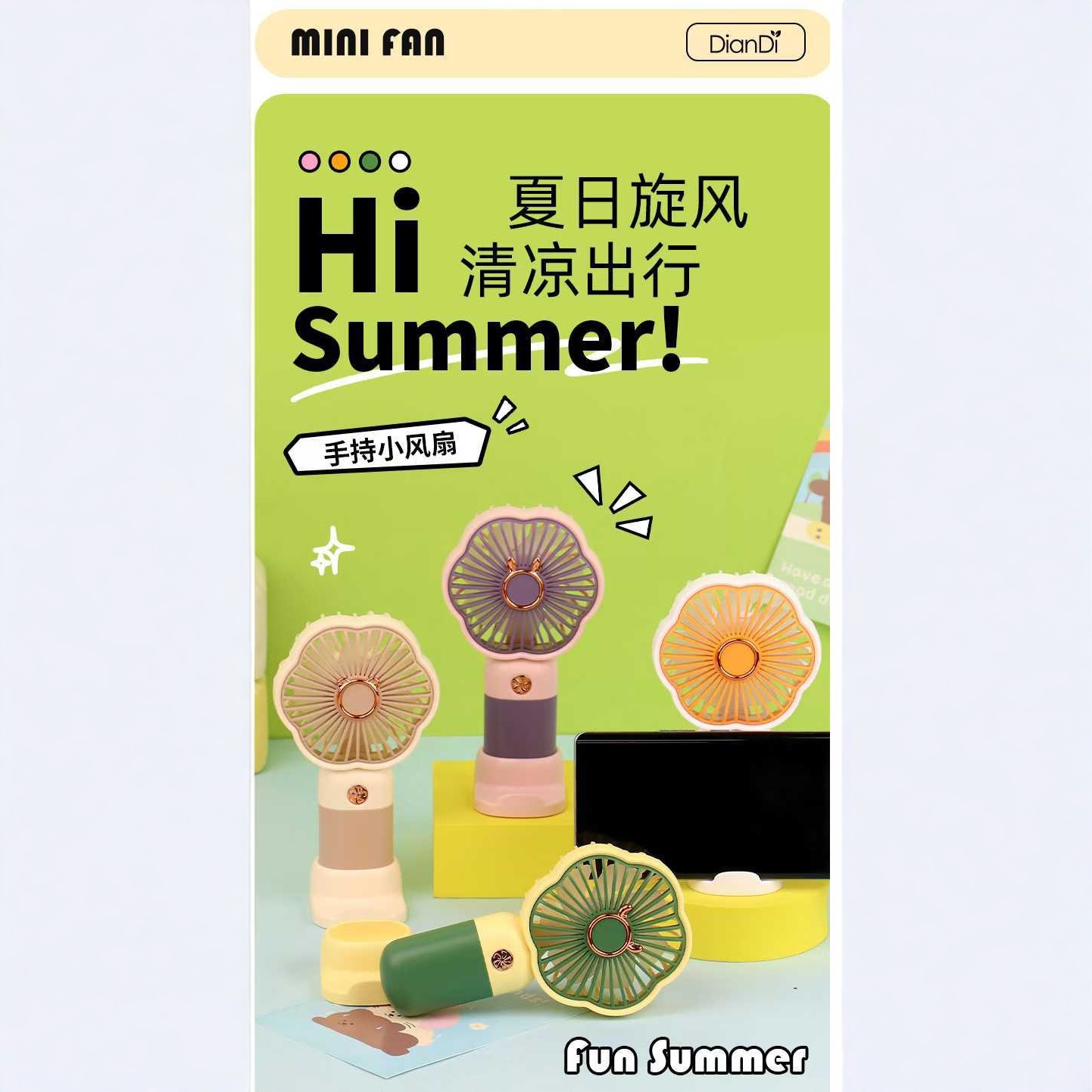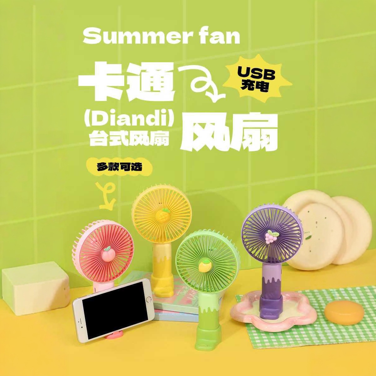 手持ち小型扇風機usbミニ充電扇風機学生屋外携帯アニメかわいい扇風機ベース付き