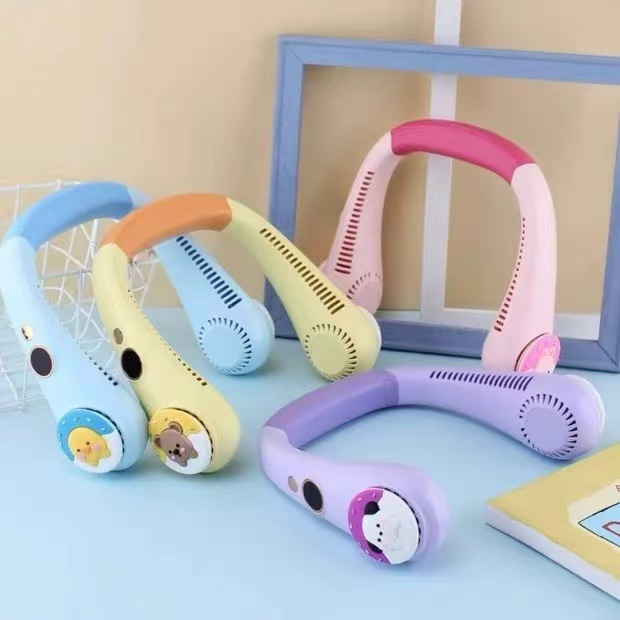 夏の首の小さい扇風機の新型のミニ携帯の漫画の葉のない扇風機のUSB充電の学生の贈り物の卸売りを掛けます。