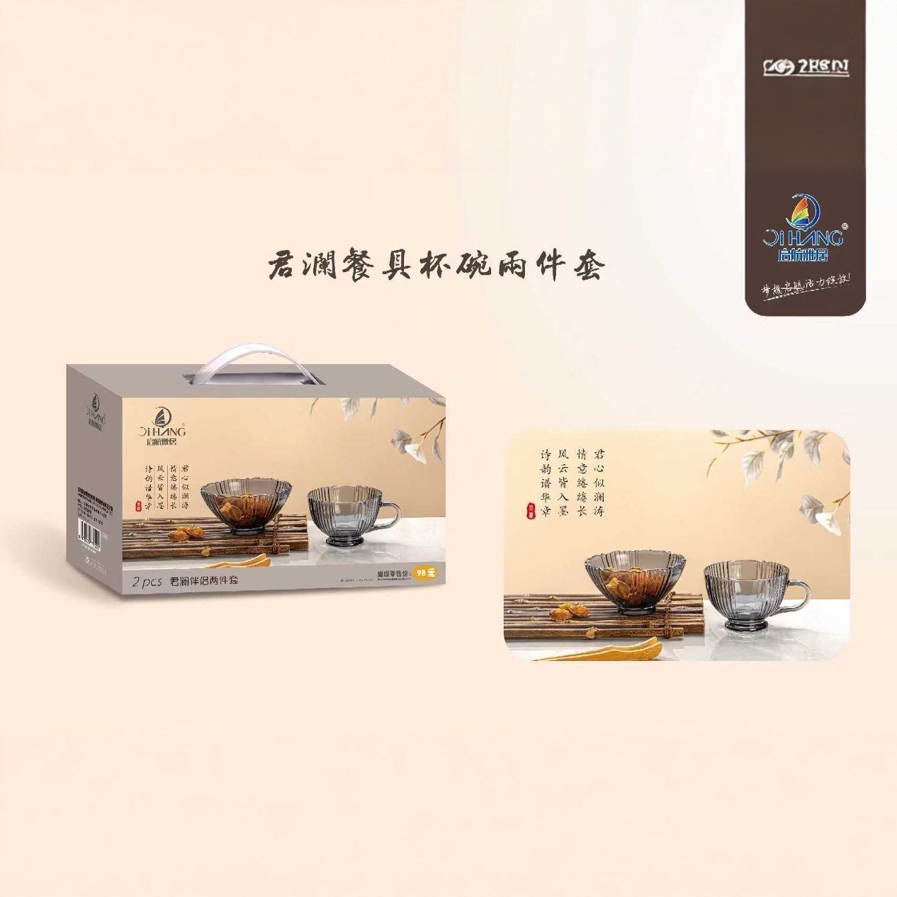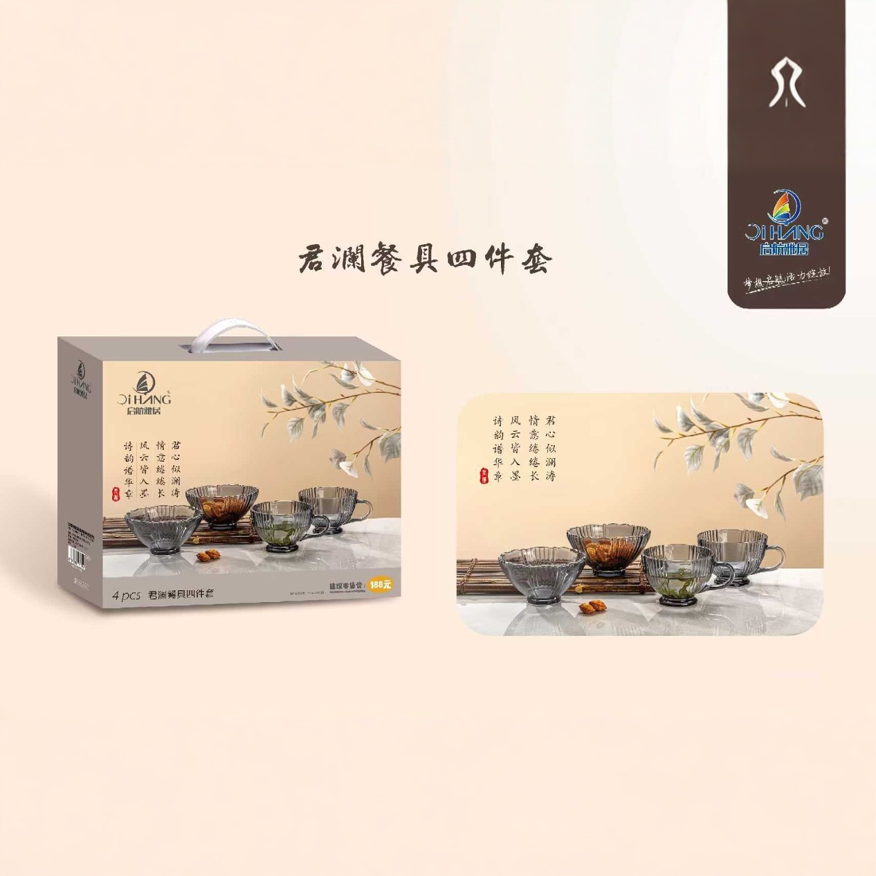 出航雅居君瀾食器四点セット牛乳碗礼箱イベントプレゼントグラス碗ビジネス家庭用卸売り
