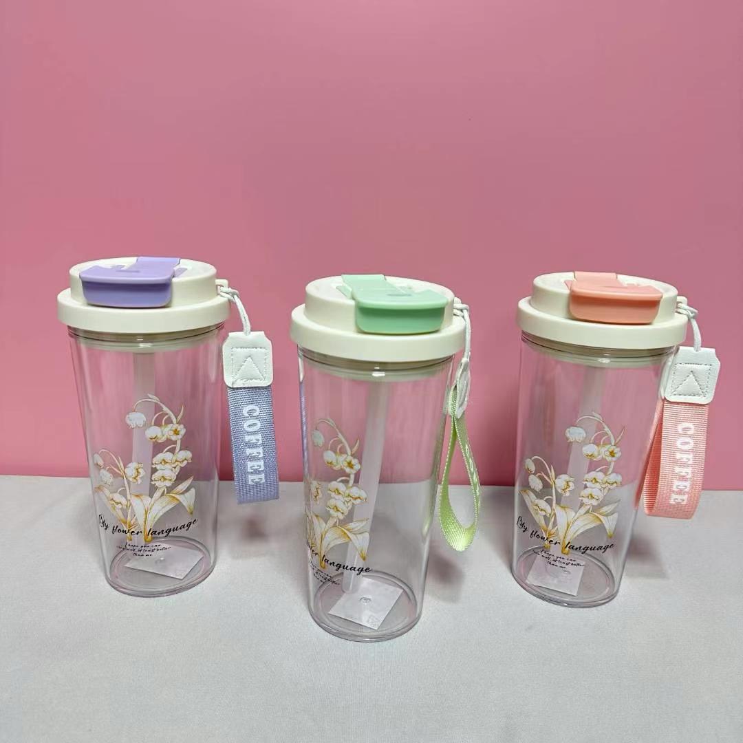 高颜値铃兰プラスチックカップ携帯手提げコップ学生ストローカップ大容量プレゼントコーヒーカップ卸売り
