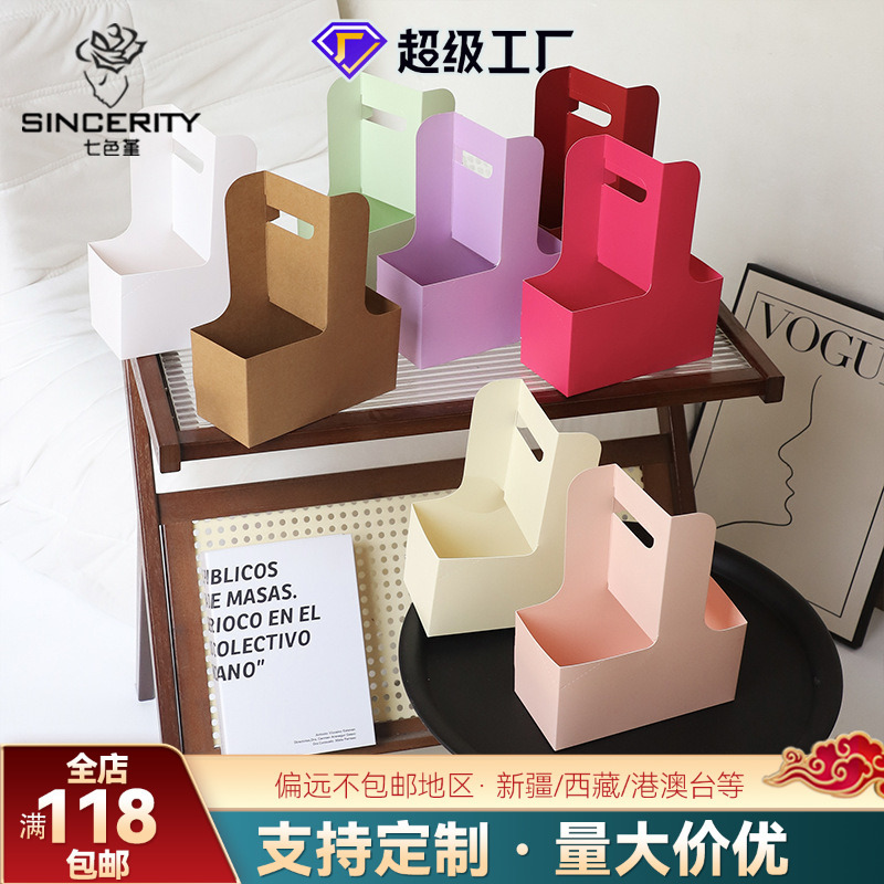 七色のすみれのコーヒーの手提げの花の箱のクラフト紙の杯は生け花のプレゼントの箱の花の花束の包装の箱を包んで外に持ってきます。