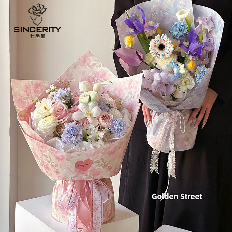 七色すみれネット赤斜め英語紙シンプルな花束包装材料クラフト紙バラ包花紙花包装紙