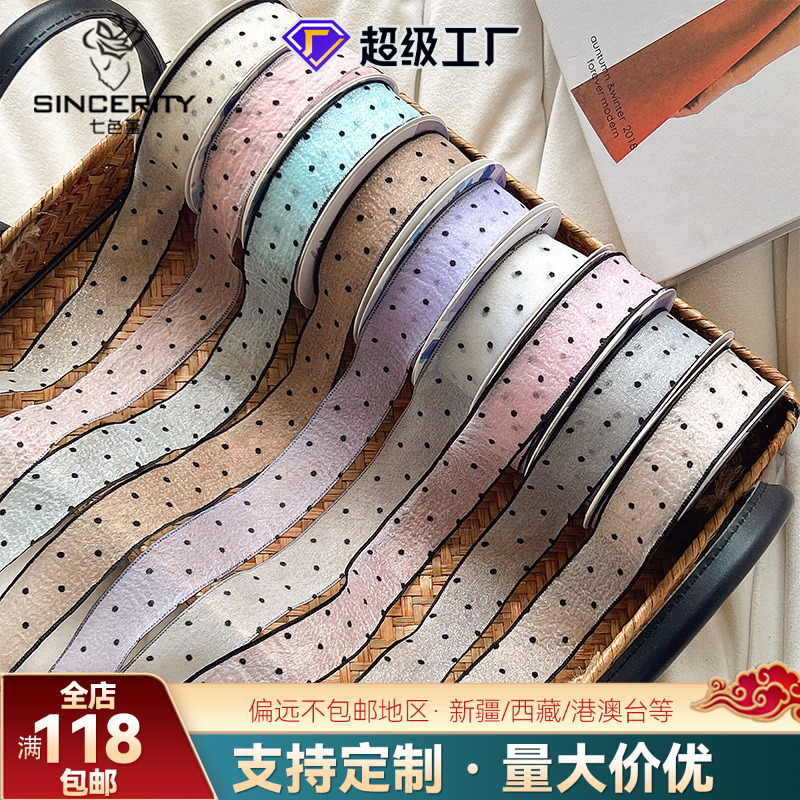 七色のクローバー春の色ドットメッシュリボン花束包装糸花包装リボン手作り diy 材料包装