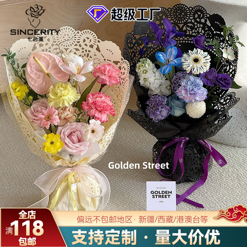 七色すみれ網紅海塩チーズ角型円形花束包装紙立体エッジ紙透かし彫りレース包み花
